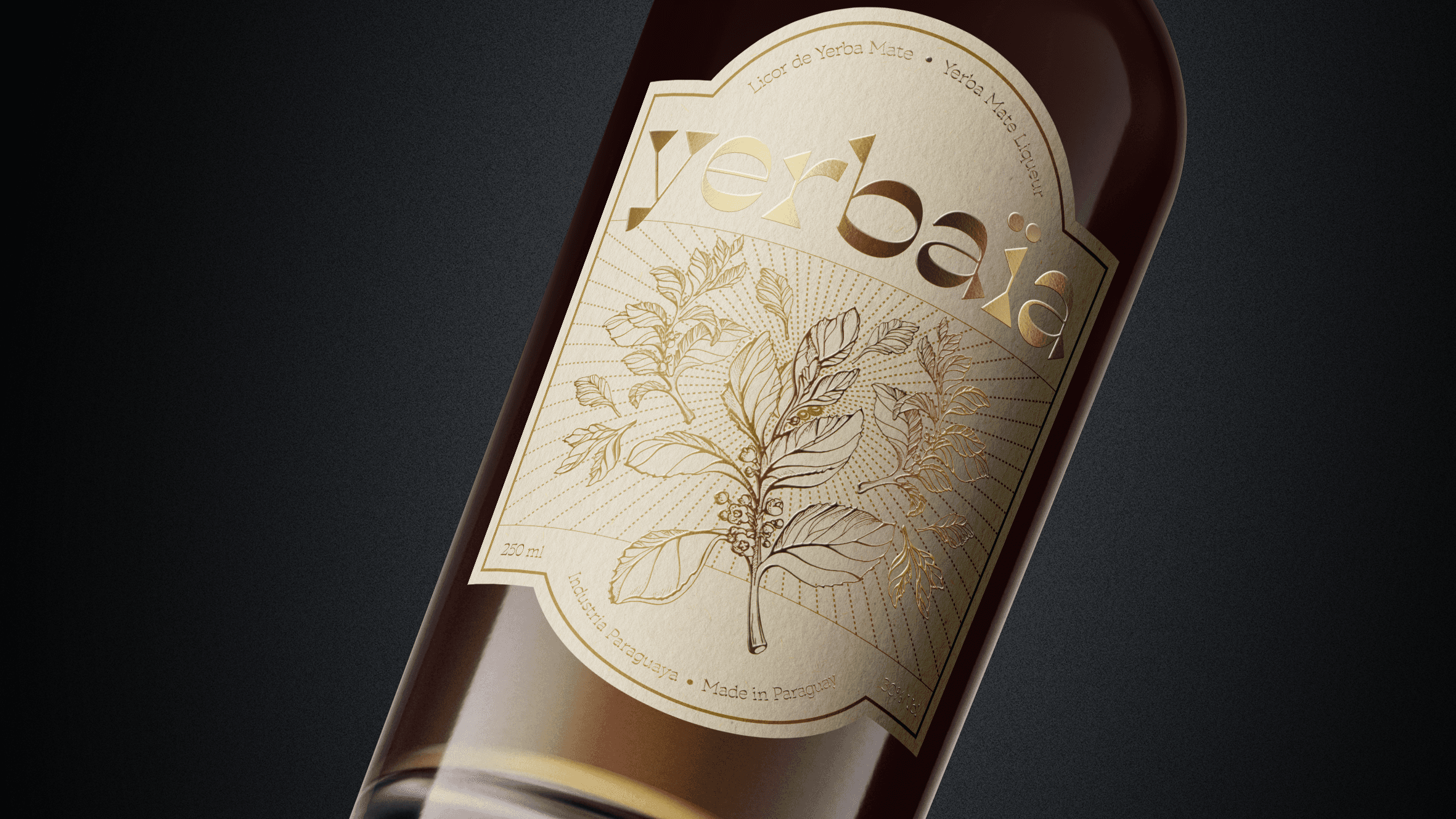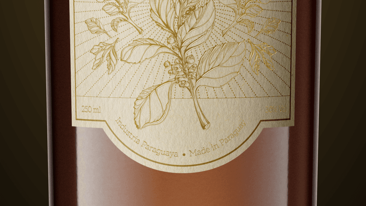 Indega lanzaba su licor de yerba mate y la etiqueta debía reflejar una estrategia clara: un diseño exclusivo y premium para un producto de exportación, donde la yerba mate fuera la protagonista. Diseñé esta etiqueta con ese objetivo, buscando un estilo refinado y cuidado que destacara el ingrediente principal del licor.